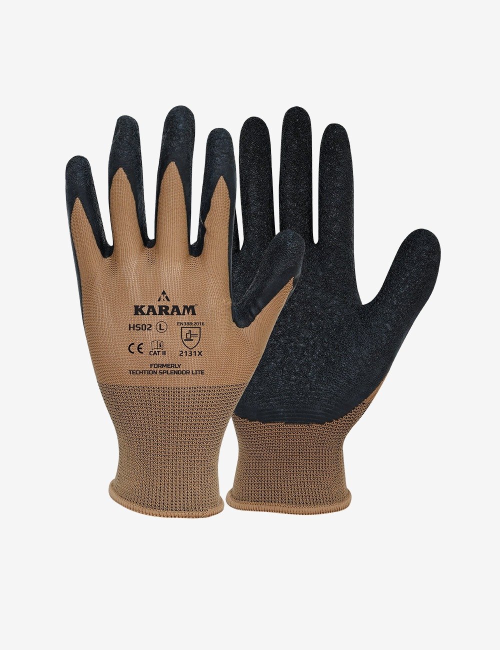 • Lightweight latex coated gloves for optimum dexterity, fit and comfort